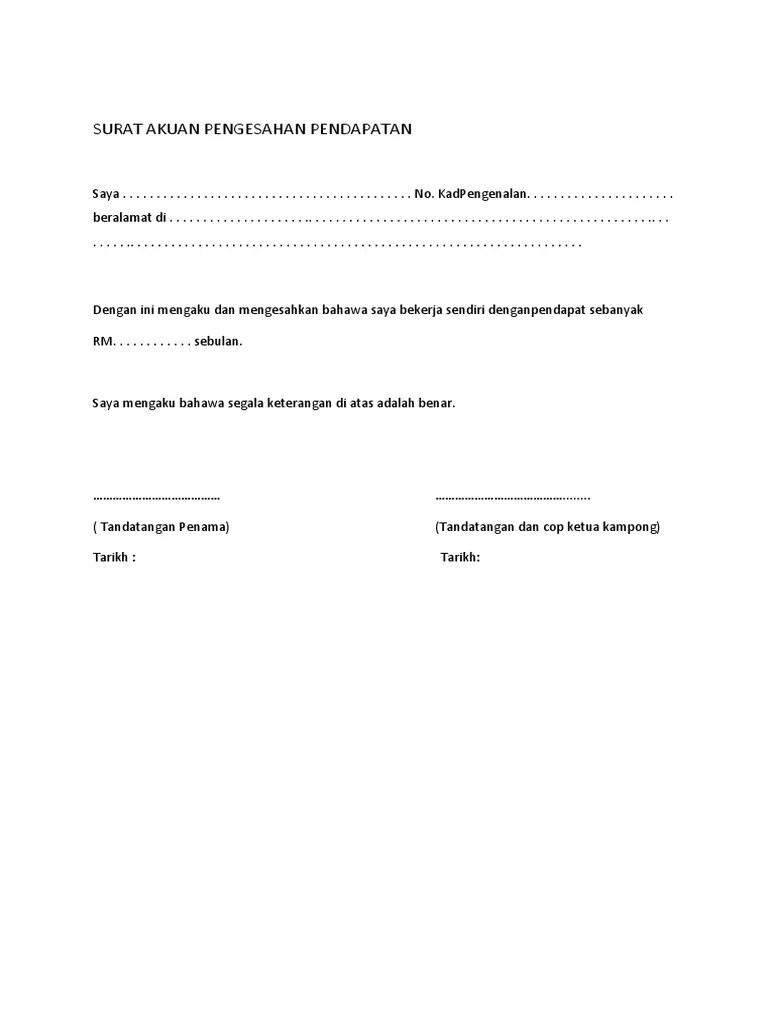 Contoh Surat Akuan Pengesahan Pendapatan Bagi Yang Bekerja Sendiri Gantikan Slip Gaji Edu Bestari Cute766 from i0.wp.com Tanpa dokumen slip gaji, bank sudah pasti akan menolak pengajuan kredit. Bahkan, slip gaji harus diberikan pada karyawan tanpa diminta terlebih dulu. Contoh surat rasmi pengesahan pendapatan bekerja sendiri via contohbee.blogspot.com. Slip gaji membantu karyawan dalam mencari pinjaman, pekerjaan di masa depan, perencanaan pajak pendapatan, memanfaatkan subsidi pemerintah, dan bertindak sebagai dokumen resmi ketenagakerjaan. Mempertahankan slip gaji sama pentingnya dengan sertifikat pekerjaan. Savesave surat pengesahan ibu bapa tanpa penyata gaji for later. Manfaat lain dari slip gaji adalah sebagai syarat pengambilan kredit tanpa agunan atau jaminan. Tidak cukup hanya untuk mendapatkan gaji tetap, gaji yang diperoleh juga mesti dapat membayar pembayaran balik bulanan.